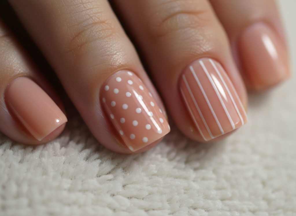 This style is about small changes. One nail with dots and another with stripes can gently break the routine. Using the same color helps the look stay smooth and wearable, even when you are busy with regular work or chores.