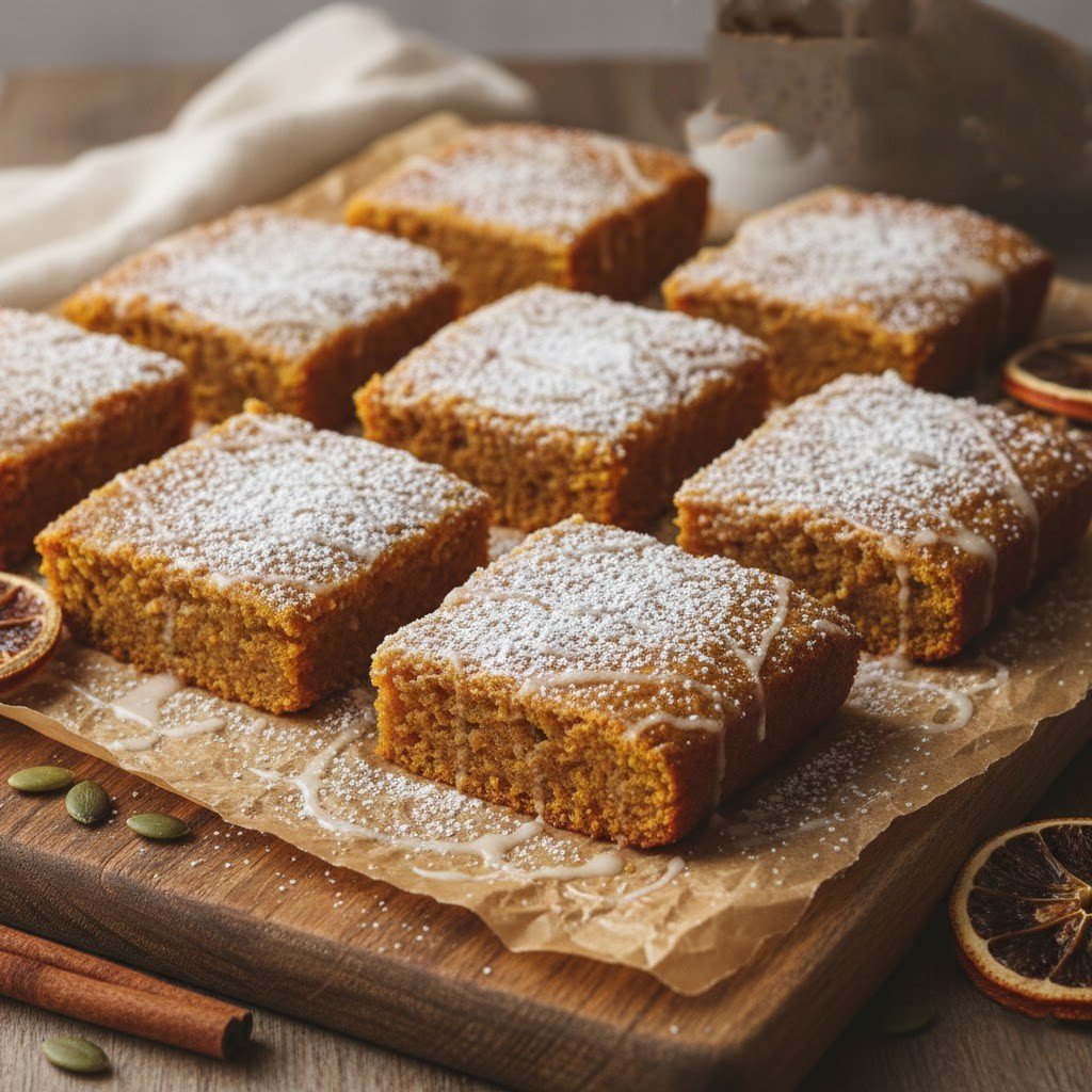 These damp pumpkin bars are delicious during the colder seasons when the seasons are spiced with cinnamon, nutmeg and cloves. They are made pretty with a light glaze or dusting of powdered sugar.