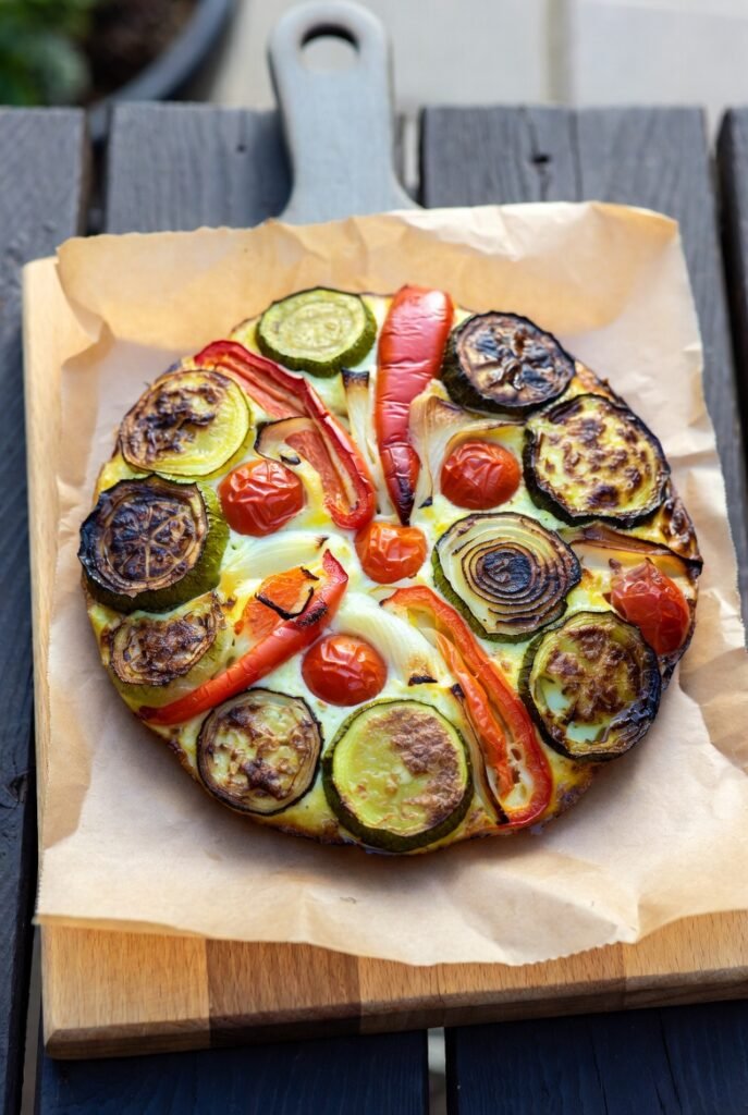 Loaded with roasted bell peppers, zucchini, tomatoes, and onions, this various frittata is ideal for insectivores. It’s hearty enough for regale yet light enough for a noon mess.