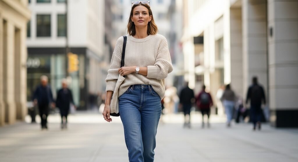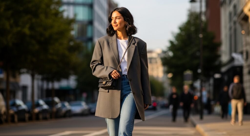 A giant blazer is the best way to upgrade a simple pair of pants. Just wear your usual jeans and a plain top under the coat. This look is perfect for grabbing food or walking around. It is a smart style that feels very relaxed.