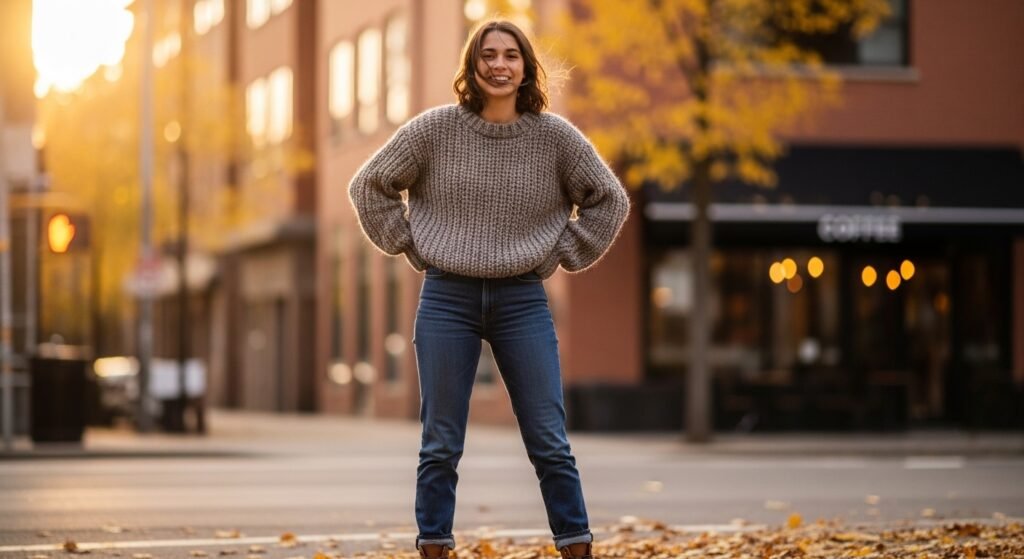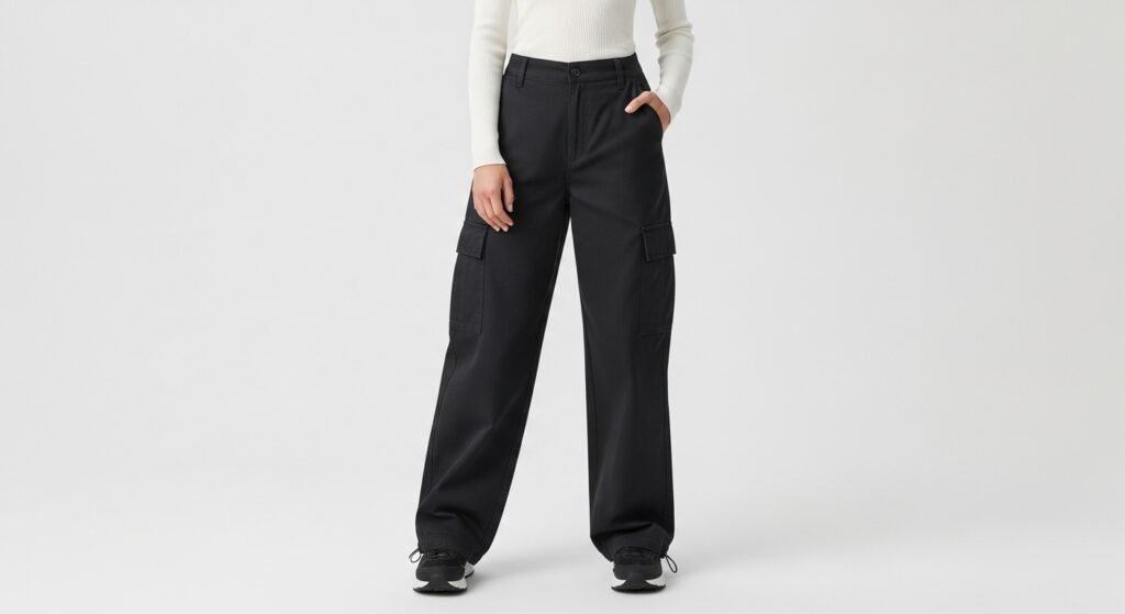 Big cargo pants are everywhere right now because they are so comfortable to move in. You should wear them with a tight sweater to keep the look clean. This simple trick makes the outfit feel balanced and great for a long day of walking.