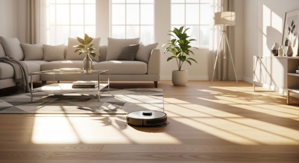 Keep your floors clean by using an automatic cleaner while you are out. It gathers dust and hair so the house stays fresh. This simple trick saves you from daily chores. You will only need to do the heavy scrubbing once a month.