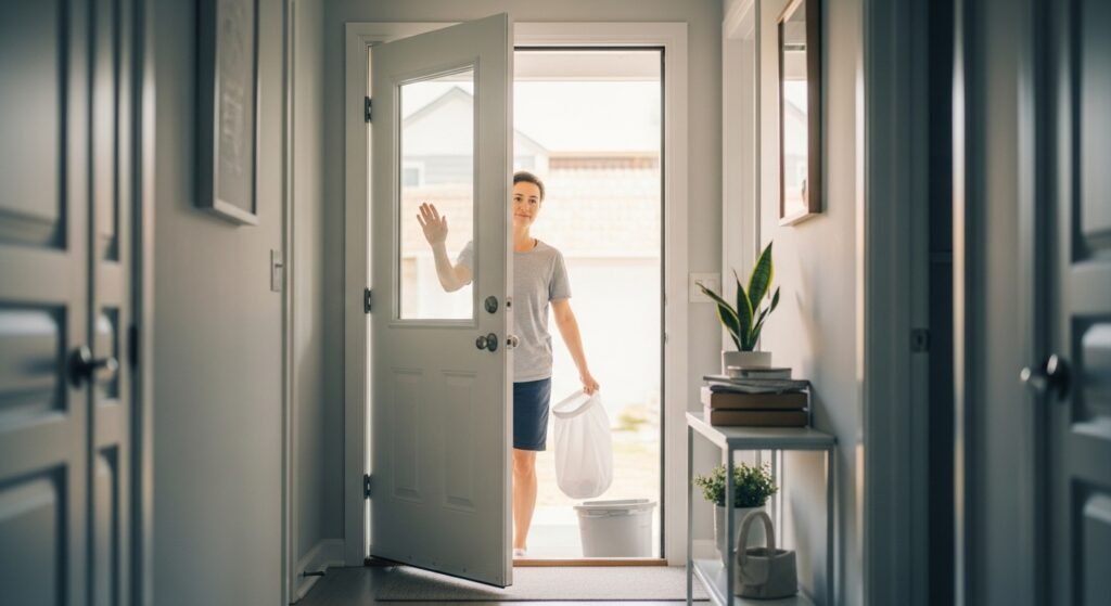 Emptying the small garbage cans from around the house whenever you leave for work stops bad smells and keeps things feeling fresh. This tiny step takes almost no extra effort but it makes a huge difference in how clean your home feels overall.