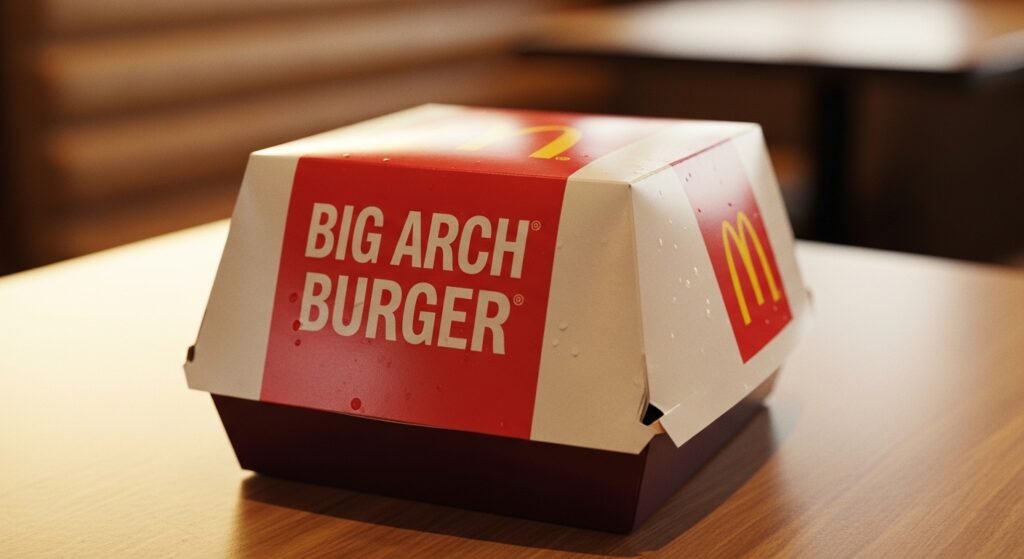 The Big Arch comes in its own special box which immediately makes it feel a bit more premium than the standard burgers you usually order. You can definitely tell it has some weight to it when you first pick up the carton and get ready to open it.