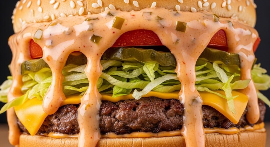 They created a brand new tangy sauce just for this burger which tastes different than the classic Big Mac sauce many people love. It is savory and tangy and pairs well with all the savory ingredients and the melted cheese.