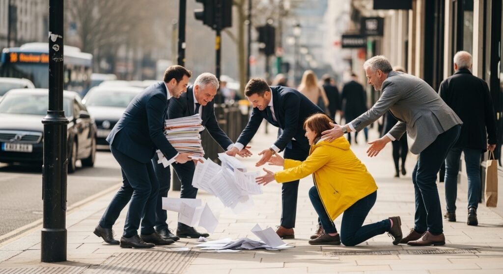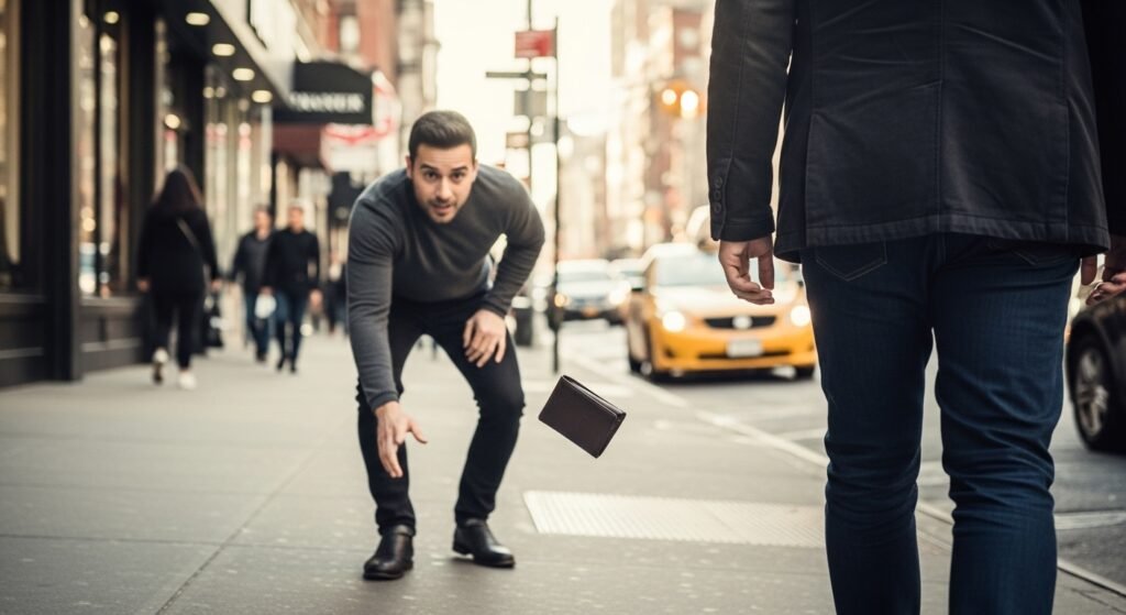 I acted like I was super clumsy and dropped papers on a busy street. It was honestly wild how fast people stopped walking to help me grab them. Everyone was so kind and jumped right in to fix my big mess. I really loved that experience.