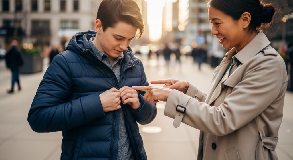 I was acting like my jacket zipper was totally stuck and I could not fix it myself. Someone actually stopped and helped me fiddle with the zipper for a few minutes until it was properly working again.