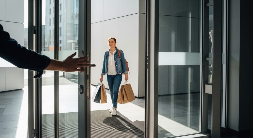 I wondered if people still hold doors for others. I watched busy spots to see what happens. Most people will hold the door if you are right behind them. They also help if your hands are full. It is a really good sign for us.