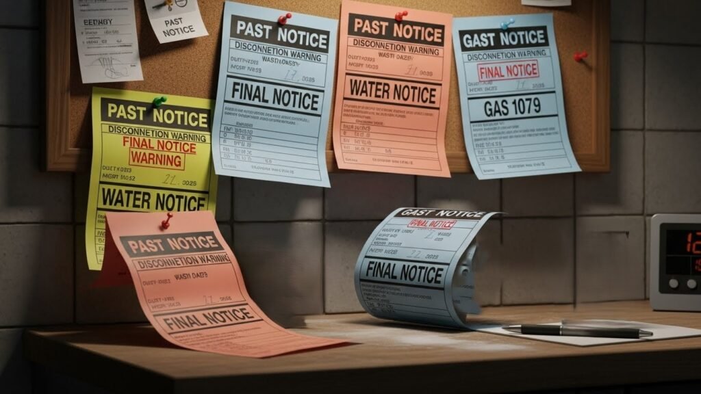 Seeing a bright colored notice from the electric or water company usually means the person is prioritizing other debts over their basic needs. It is a clear signal that the monthly cash flow is not enough to cover the essential costs of living.
