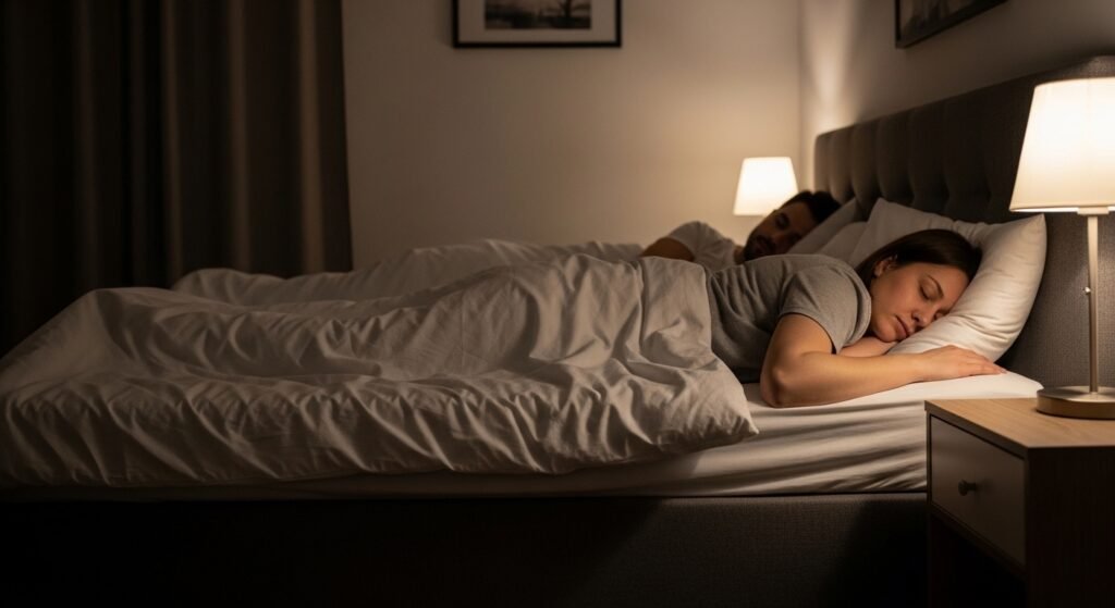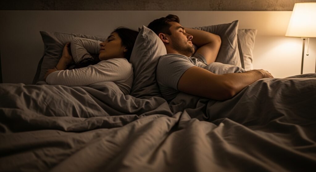 Sleeping with your back to your partner actually shows a lot of deep trust. It means you both feel totally safe and happy together without needing to cling. This space shows your bond is strong enough that you do not worry about losing them.