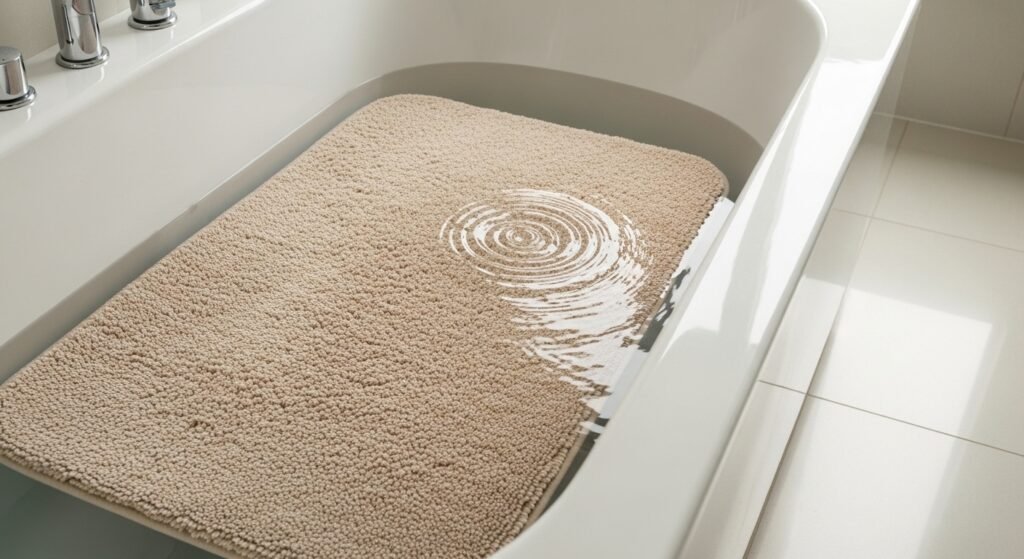 Beneath its soft pile and sticky rubber sole, a bath mat traps more than just footprints – it holds water and dirt too. Pull it aside and soak it gently in running warm liquid, working past surface layers where messes like to hide. That soak reaches what regular sweeping misses, leaving tiles beneath both fresher and drier.