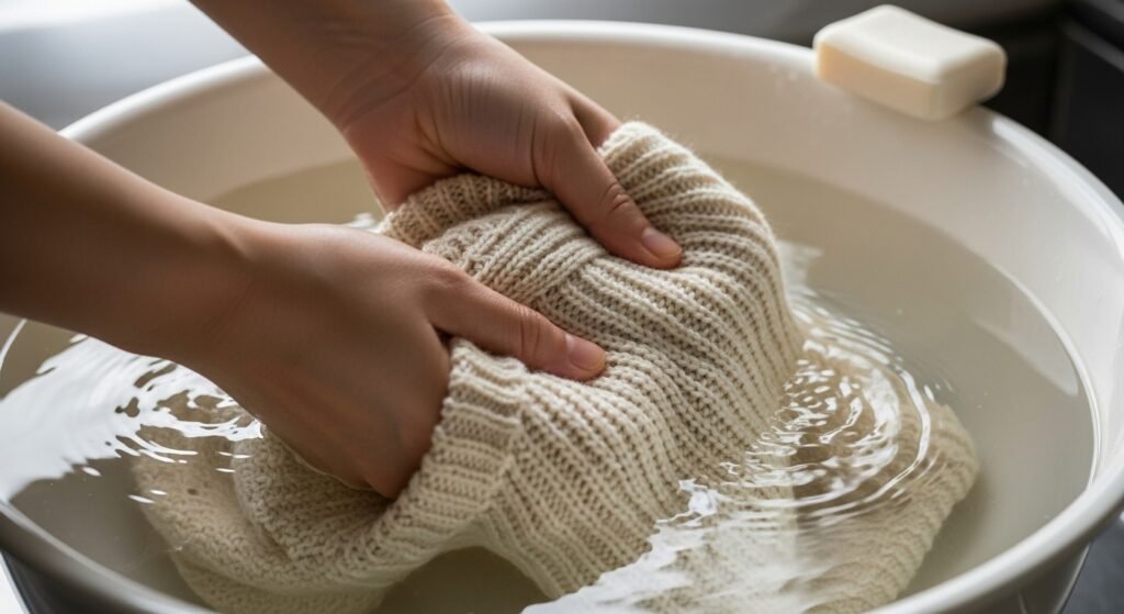 While you have to be careful not to shrink them many pros say lukewarm is better than freezing cold to get dirt out of the fibers. You just have to make sure the temperature is consistent so the wool doesn’t get shocked and lose its natural shape.