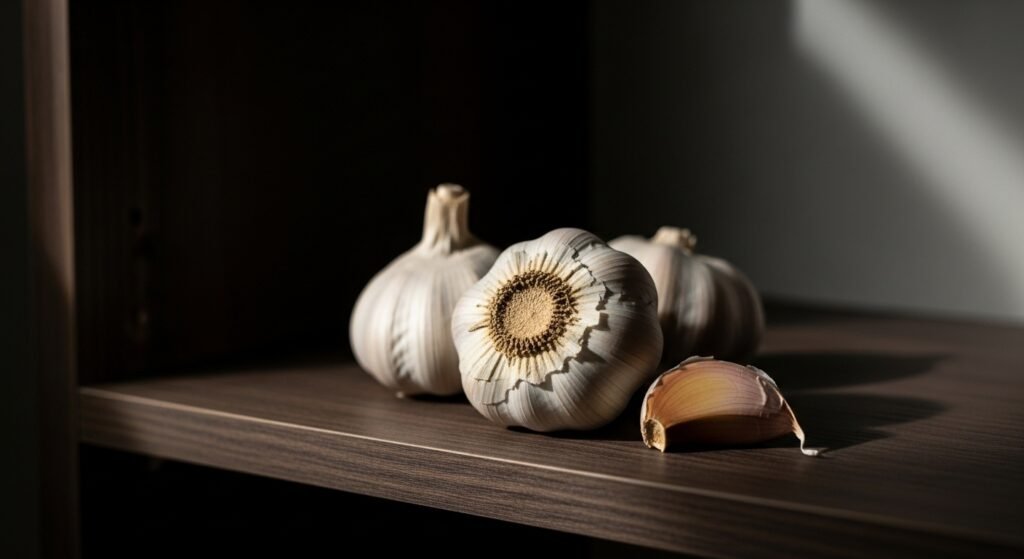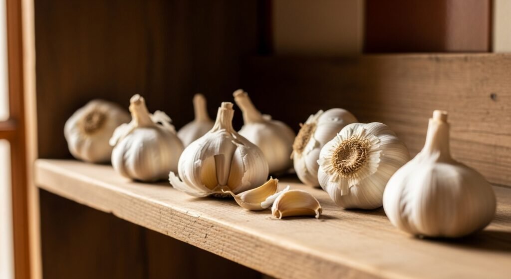 Find a spot for your garlic that stays away from any bright light. A kitchen drawer or a dark shelf works nicely. You want to keep it away from warm areas like the heater. This helps the cloves stay fresh and ready for your meals.