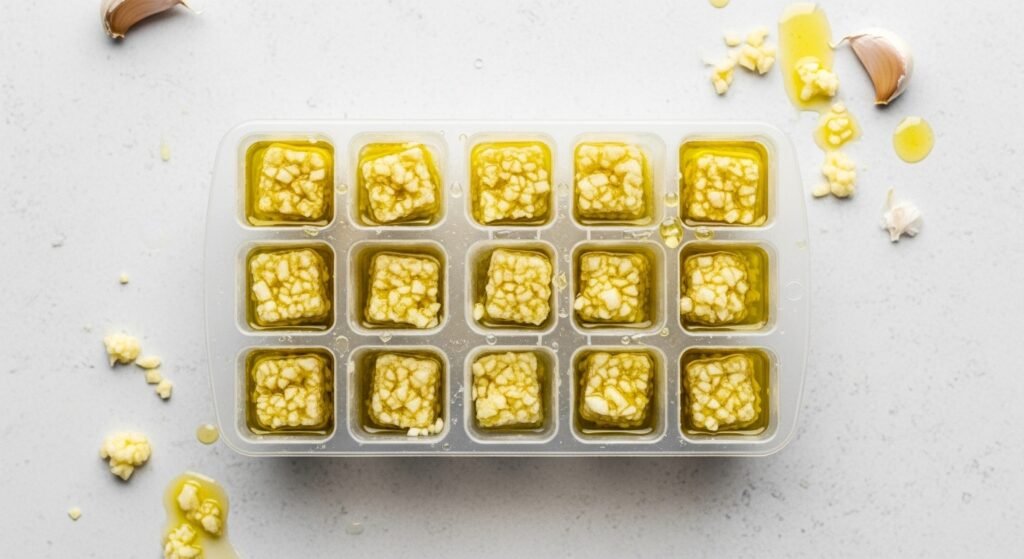 Try dicing garlic and mixing it with oil inside an ice tray. Putting these in the freezer helps them last a long time. It is a simple way to get your cooking done faster. You can just grab a cube and start heating up your meal.