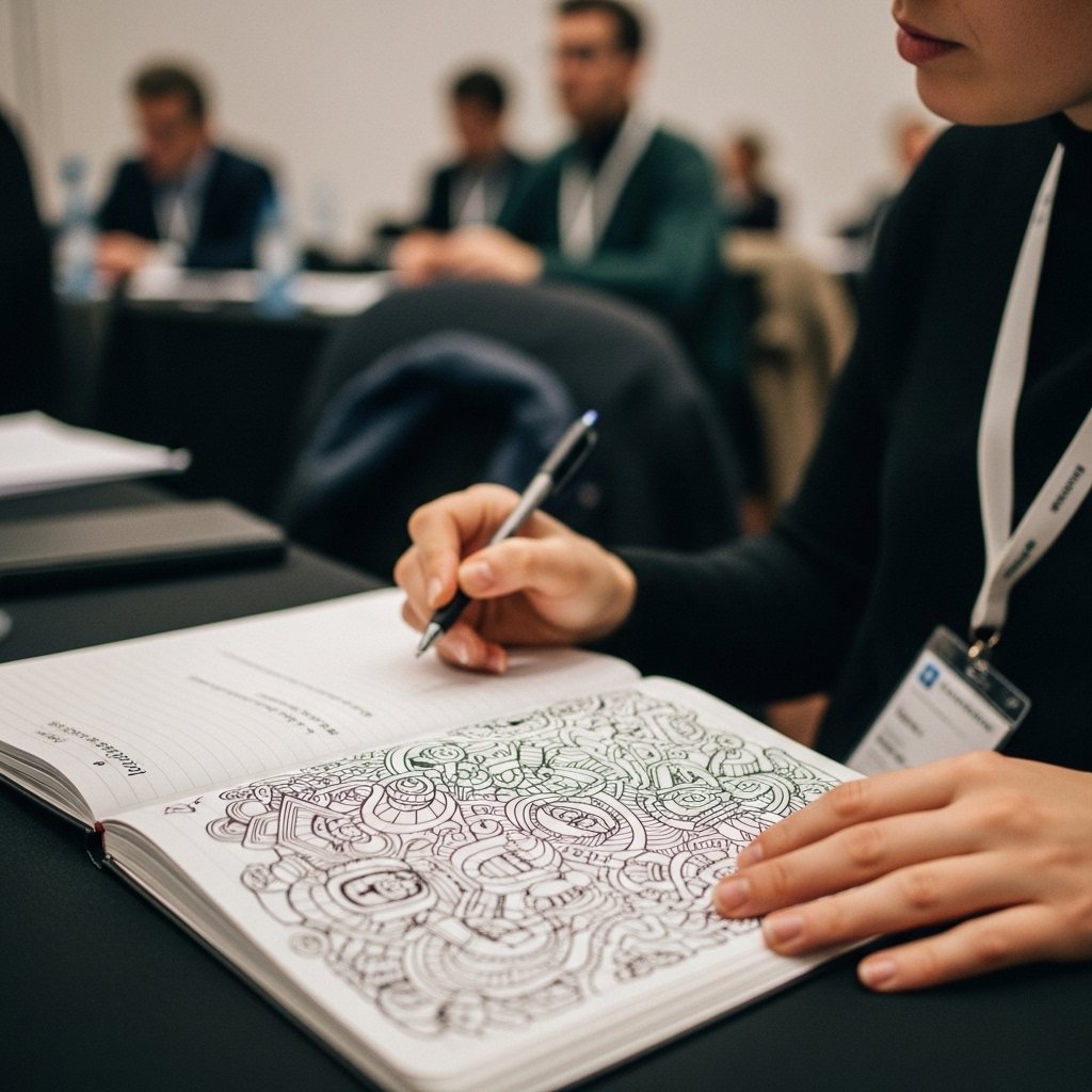 Drawing on paper while others talk can seem lazy to some people but it usually serves a goal. It stops the mind from daydreaming too much during a chat. This activity helps people keep their focus on the main topic being discussed right now.