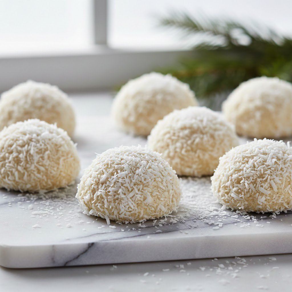 Coconut snowballs are buttery, round cookies rolled in finely shaved coconut. They’re not overly sweet, yet have a tropical, festive medley of flavours that offer something along the lines of a perfect holiday cookie without being everyone else’s spice one.