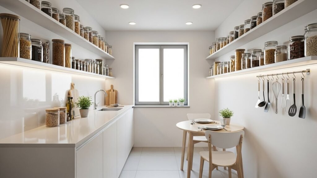 You can put shelves high up on your walls to hold your things. This clears off the flat parts where you cook food. It helps the room feel much bigger. Your tools stay close by. This way you have more space to move around.