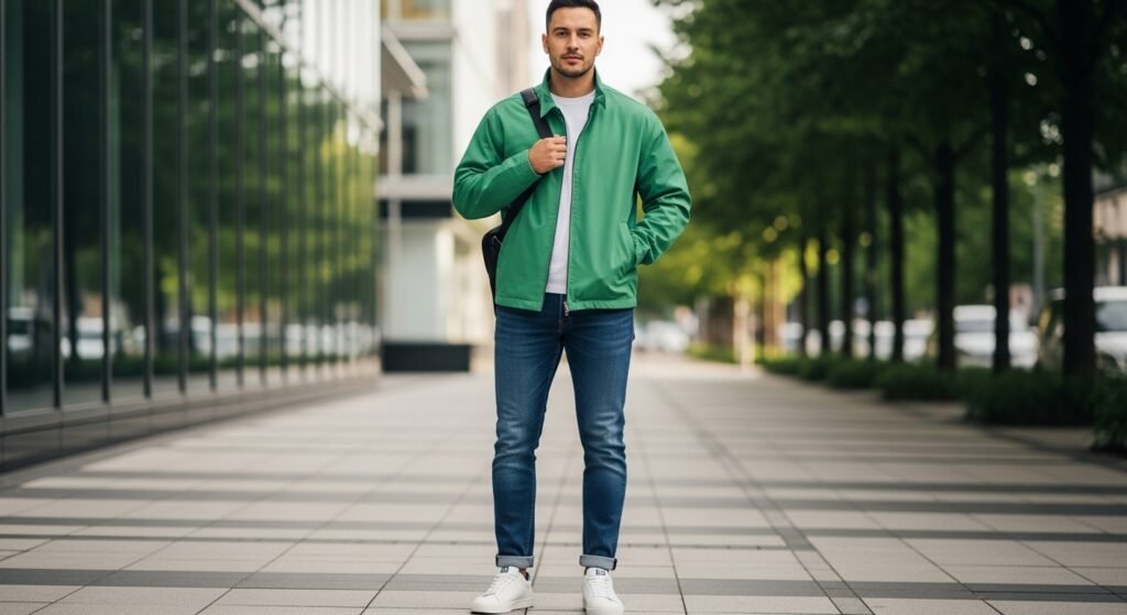 Bright green is a big hit this year and you see it everywhere lately. Guys are wearing this color on simple jackets or casual shirts. It looks very clean if you wear it with white shoes and dark blue jeans for a nice look.