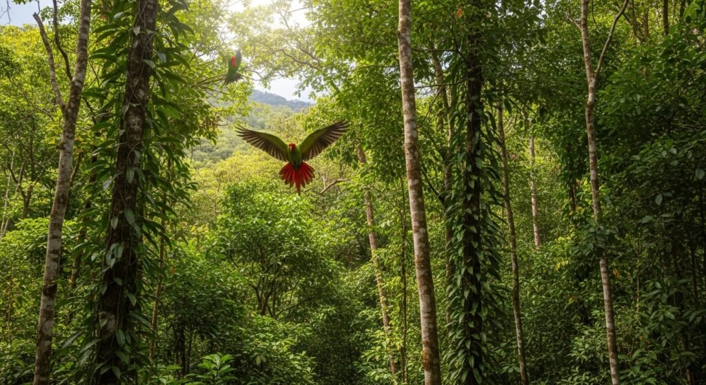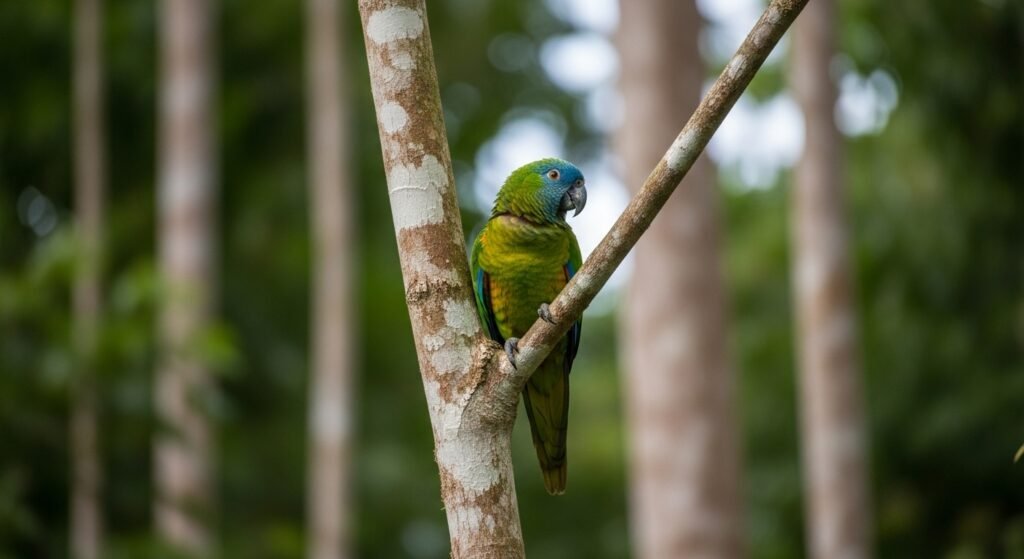 You can find a very rare bird in the El Yunque forest. It is the Puerto Rican Parrot and it stays only there. Many people work to protect them from disappearing. Seeing these bright green and red birds is a special treat.