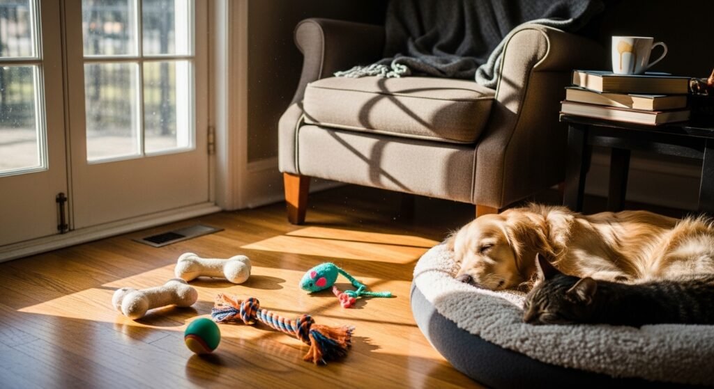 Seeing a chew toy in the corner brings a smile because it means a pet loves living there. It brings a playful energy to the room that perfectly tidy homes just do not have.
