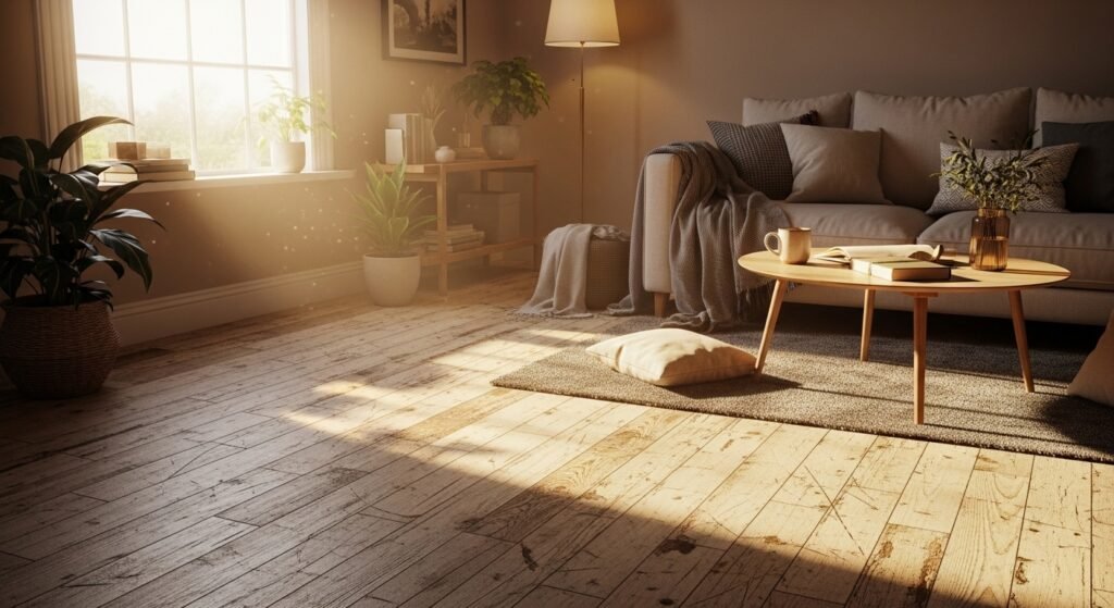 Old wooden floors carry the memory of every step taken over many decades. There is no reason to sand away the marks. Those scratches make a room feel warm and friendly. A perfect floor can sometimes feel cold and empty to guests.
