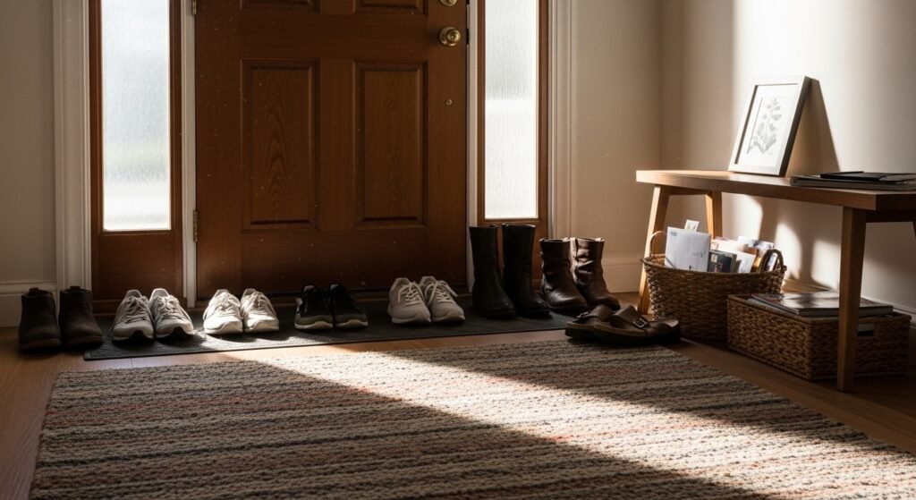 When you see shoes near the doorway you know your home is full of life. It means that people you love are coming and going throughout the day. Your house stays cozy and friendly for your guests. It is a place for living not for staring.