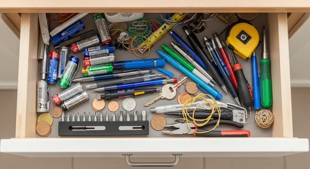 Everyone has that one drawer filled with batteries and pens and it is actually quite useful to have one. Knowing exactly where to find those random items makes a house run smoother.