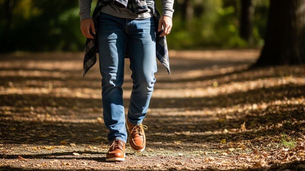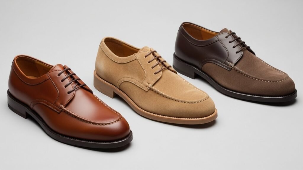Many moc-toe shoes use thick leather or soft suede that suits long walks during busy workdays. The material slowly changes with use and time. As it wears in, it can look natural and relaxed, pairing well with jeans or simple office pants.