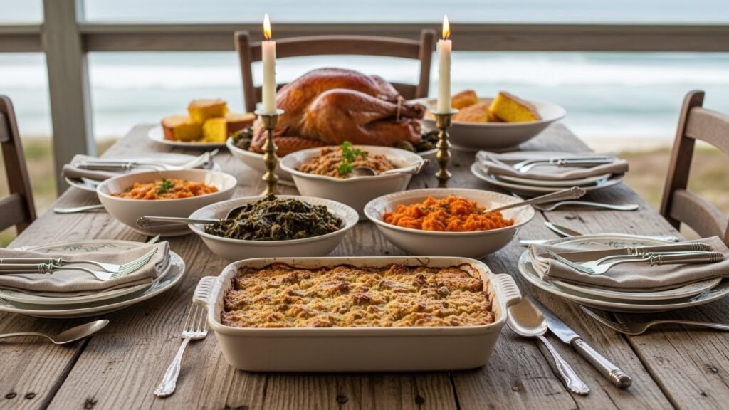 This savory stuffing is most popular in coastal areas and often features fresh oysters mixed with saltine crackers and sage. It remains a very traditional holiday treat for some families even though it is a rare sight for most.