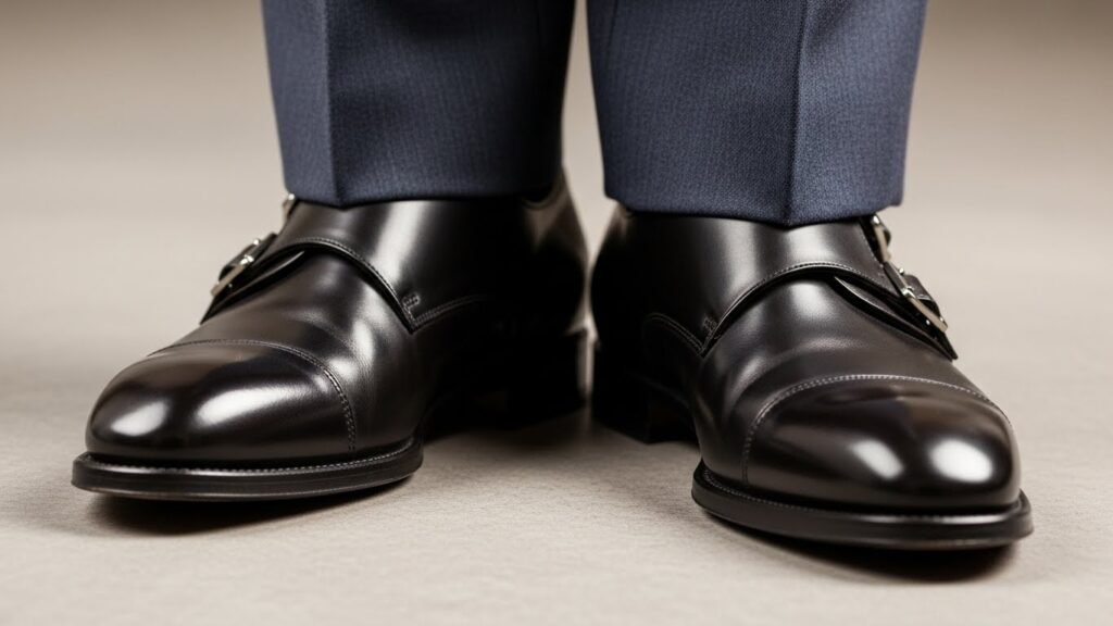 If you want fancy shoes without any laces you should look at monk straps. They use buckles instead of strings to stay on your feet. Most people pick black or dark red leather versions. These shoes can make your nice clothes look even better for big events.