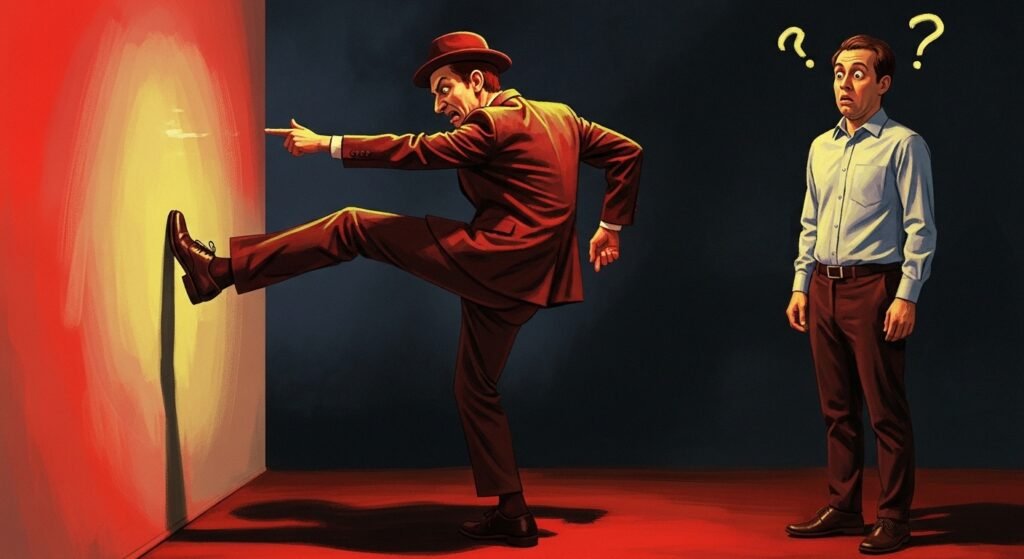 Lightly kick a nearby wall and look at a stranger and say please stop. They will definitely feel weird because they did nothing at all. This is a very funny way to make people laugh when you want to act really strange today.