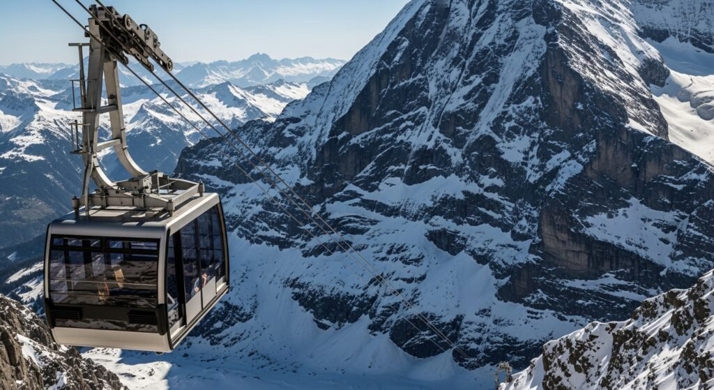 The trip up the mountain usually involves the modern Eiger Express gondola which takes you up the steep slopes in just fifteen minutes. It is a fun ride that gives you a super close look at the big rock faces of the Eiger mountain before you catch the next train.