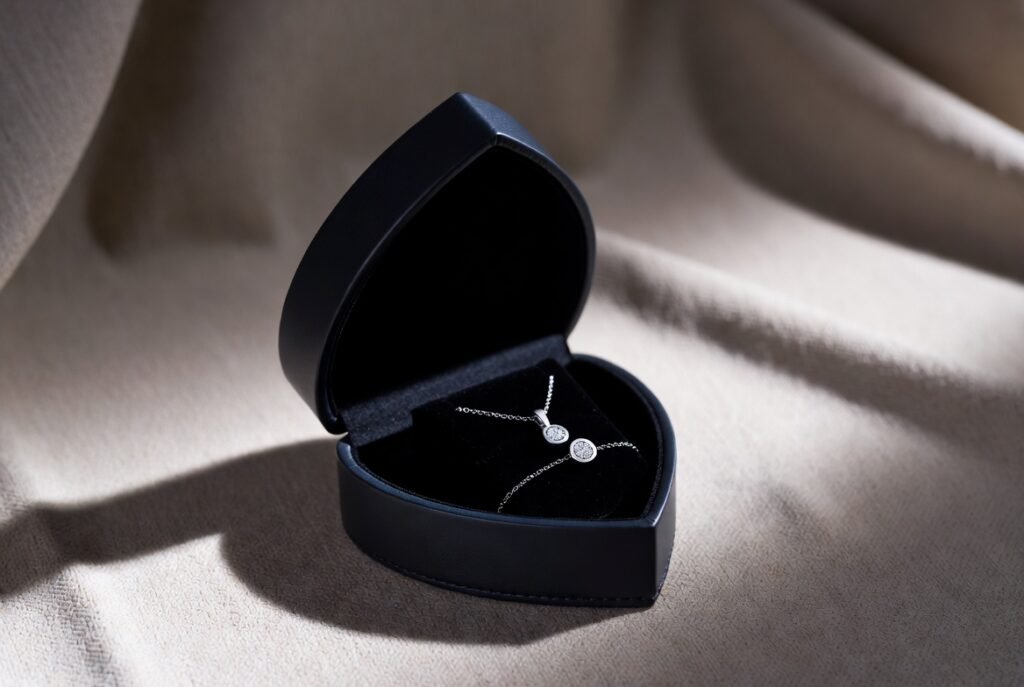 The jewel she and he possess, e.g. a necklace, bracelet or earrings, can be placed in a box with a heart shape. Choose according to his or her style or something that has a personal meaning. Objects made by the hands of artisans or housemade appear especially significant and the box turns into treasure chest.