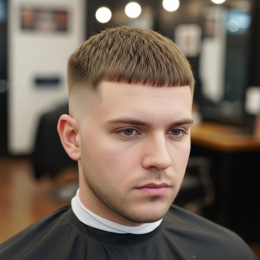 A crew cut keeps the sides short while leaving just enough length on top to style slightly forward or to the side. This helps draw the eye toward your face rather than focusing on the corners of your hairline which makes it a very popular choice.