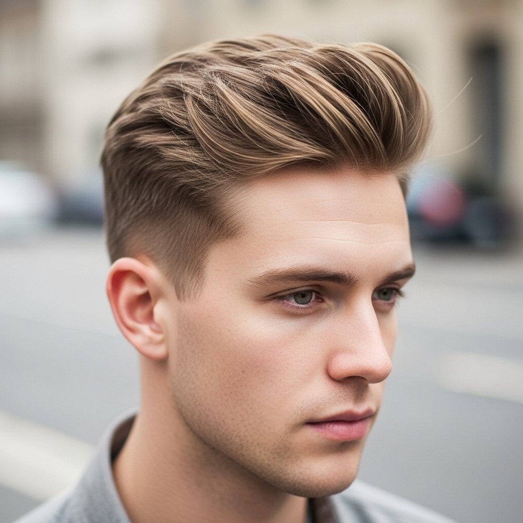 A quiff involves brushing the front of your hair up and slightly back to give it some height and volume. This works because it creates a focal point at the center of your forehead which naturally balances out the deeper corners of a receding hairline.