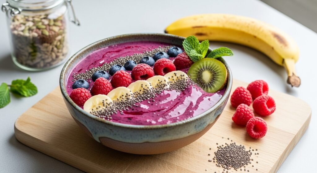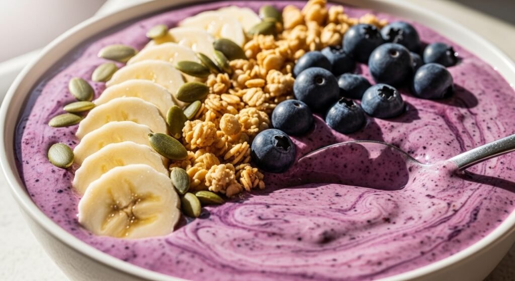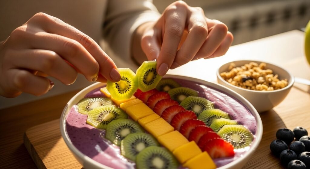A smoothie bowl is basically a very thick fruit snack that you eat with a spoon. If you just drink your food you might get hungry again in ten minutes. The thick texture makes it feel like a heavy breakfast. It gives you a good reason to slow down today.