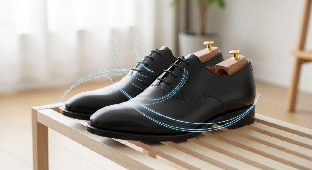 You can try to store your shoes in a chilly spot where the air moves around freely. This makes sure they are totally dry before the next use. Using cedar inserts might help pull out moisture and stop the pieces from shifting around and making loud noises.
