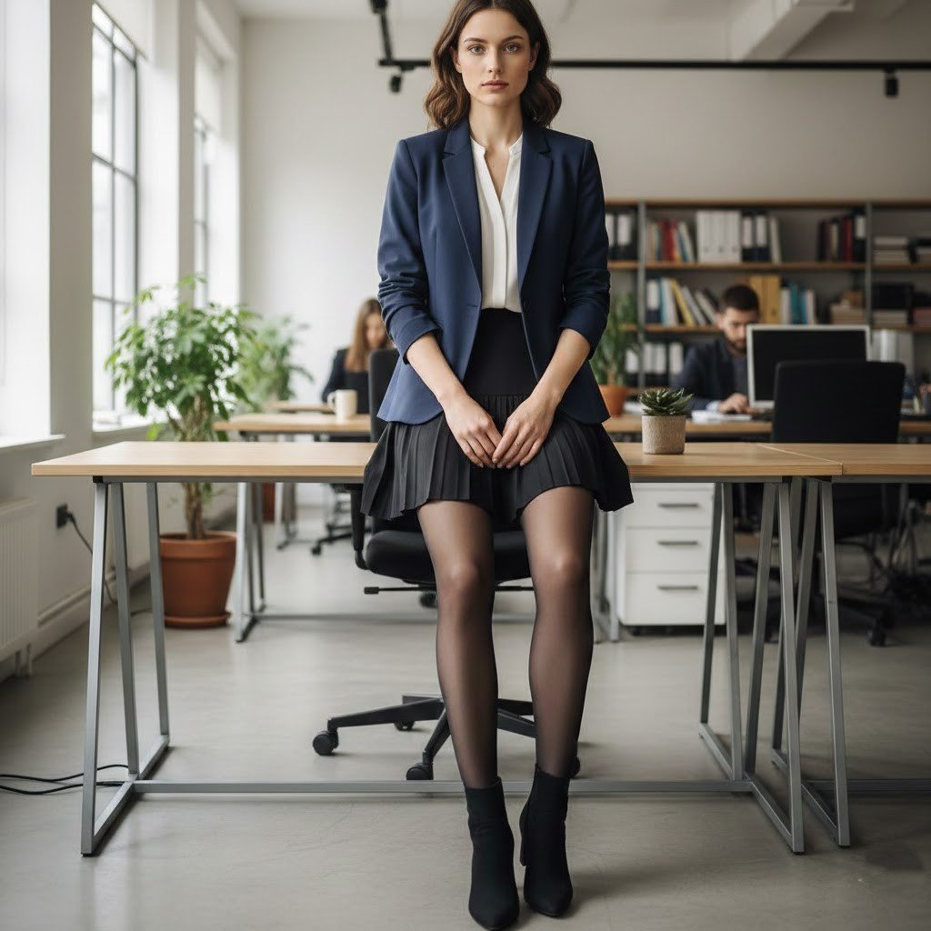 A very short dress or skirt can be inconvenient and it may embarrass you all day. Office clothes must enable one to sit, to move and work comfortably. Knee-length or higher may provide a strike in between style and professionalism.