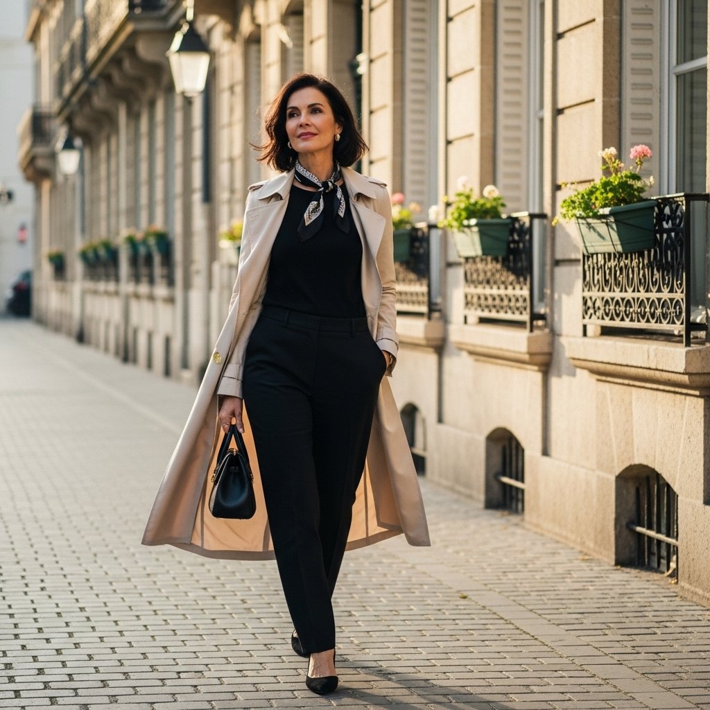Most older French women do not wear loud neon outfits. They tend to pick soft colors like black or tan instead. A bright scarf is a nice way they add some fun to a look. It is a simple way to stay looking very elegant.