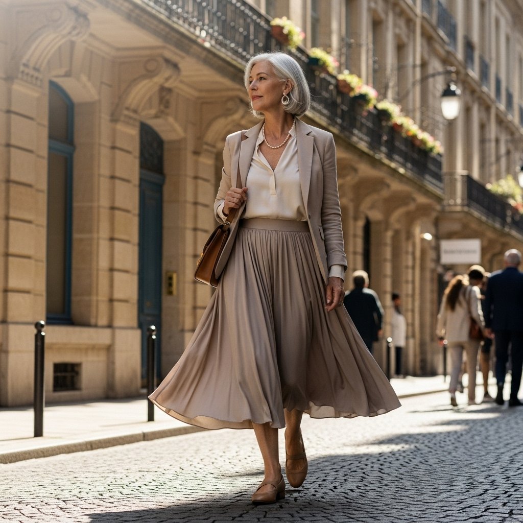 French women over sixty usually skip short skirts. They often choose styles that end at the knee or lower down. This choice helps the fabric move well as they walk. It is not about rules but about finding a shape that feels very comfortable.